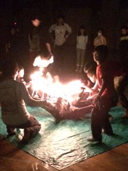 あいにくの雨のためプレイホールでキャンドルファイヤーになりましたが、みんな楽しく大盛り上がり!