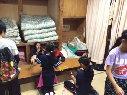 昨日の様子です。感動のキャンドルファイヤーが終わりました。その後,班別ミーティングが行われました。