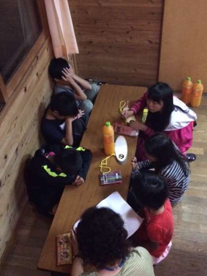 昨日の様子です。キャンドルファイヤーが終わり,班別ミーティングでも涙が止まらず…
