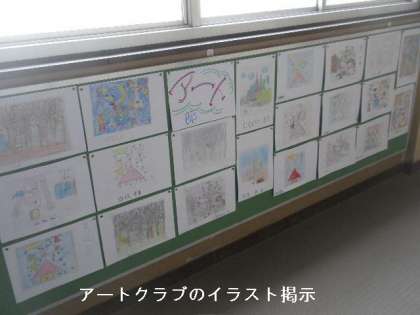 部活「アート部」でがんばった作品が北校舎1階(4くみ教室前)に掲示されています。