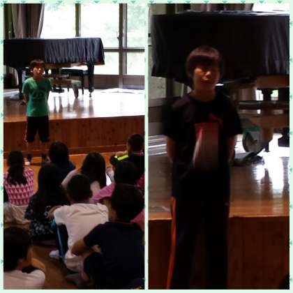 山の家での全ての活動が無事に終わりました。退所式をしています。