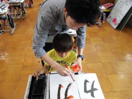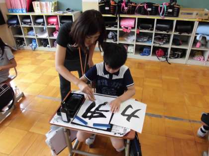 書写の時間に「力」の字を書いていました。文字の一画一画,丁寧に書いていました。