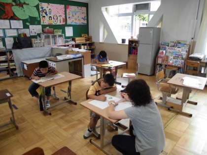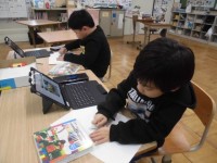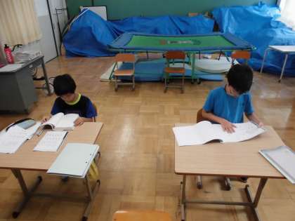 国語の時間に漢字の練習やひらがなの練習,読書をしていました。2年生のお友だちは,交流学級と一緒にビオトープに生き物探しに出かけていました。