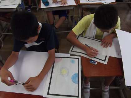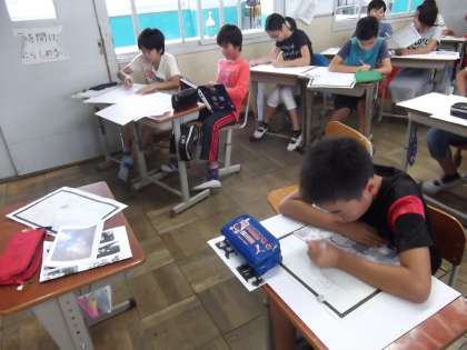 図画工作の時間に「宇宙」をテーマに絵を描いていました。どんな作品が出来上がるか楽しみですね。