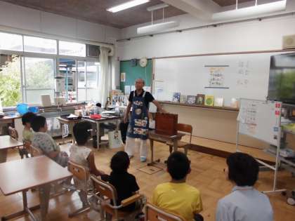 JPIC読書アドバイザーの諸岡弘さんが読み聞かせをしてくださいました。