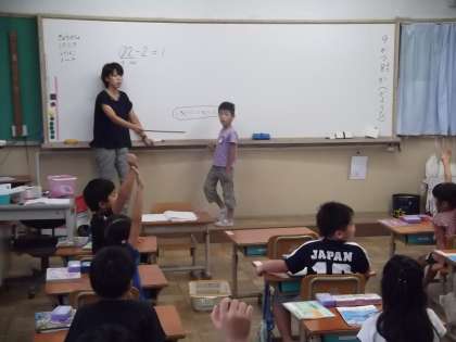 算数の時間に「よみとるさんすう」を学習しています。今日は,みんなでひき算の仕方を考えていました。