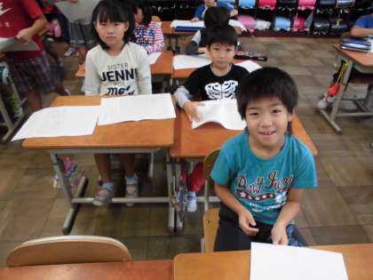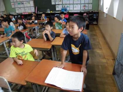 国語の時間に「どうぶつ園のじゅうい」を学習しています。今日は,学校でしている当番を伝える文を書くために話し合っていました。