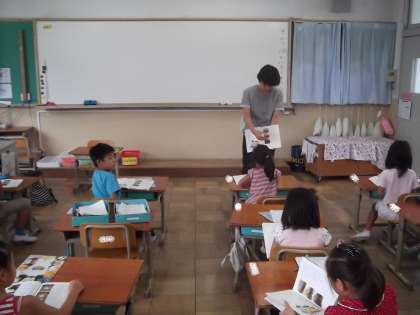国語の教科書に出てくる「うみのかくれんぼ」の音読練習をしていました。先生が,見本で一度お話を読んでからみんなで練習していました。