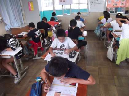 理科の時間に「月と太陽」の学習をしています。今日は,まとめのテストをしていました。