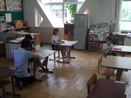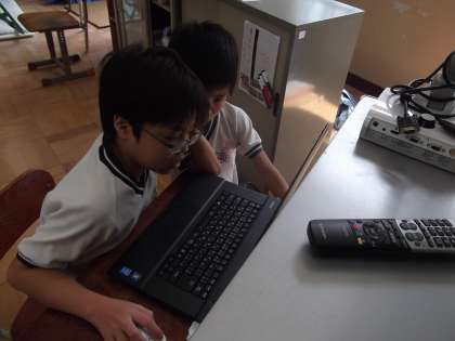 国語の時間に漢字練習,ひらがな練習やコンピュータを使って漢字パズルをしていました。