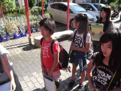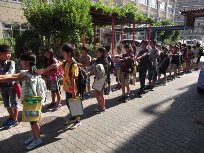 今日は,ダイハツ池田工場に社会見学にいきます。5年生,出発しました。いってらっしゃい!