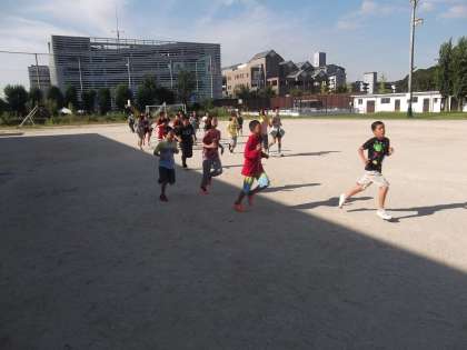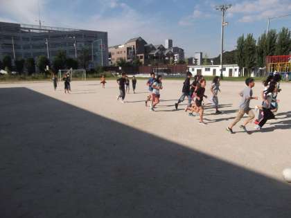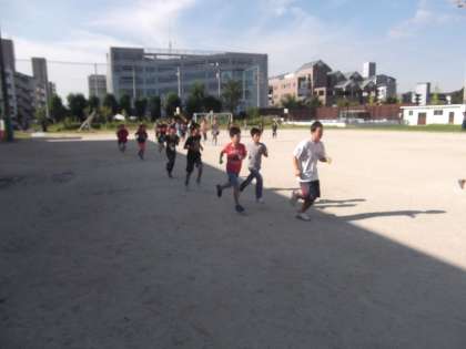 大文字駅伝予選会に向けて体力づくりをしています。がんばれ6年生!