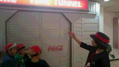 コカコーラのタイムトンネルにはいって、展示物を見学しています。
