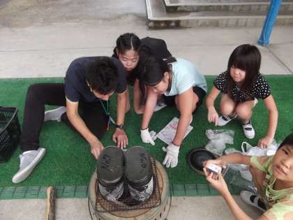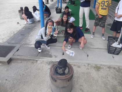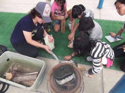 みさきの家に向けて野外炊事の練習をしています。火は,上手につけることが出来たかな?