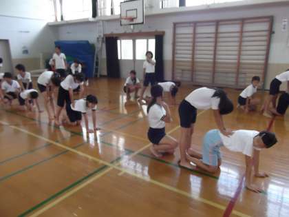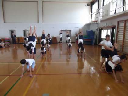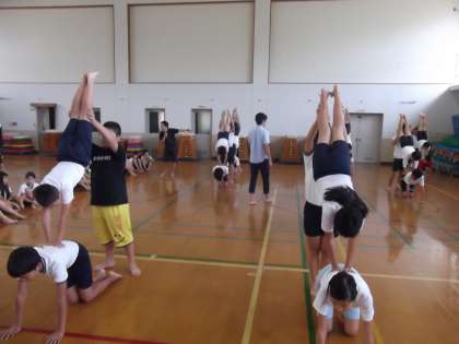 運動会に向けて組体操の練習をしていました。