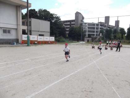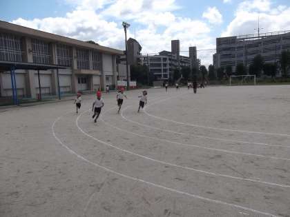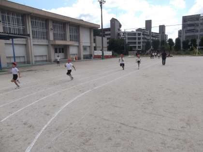 体育の時間に,運動会に向けて80m走の練習をしていました。