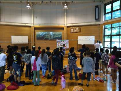 入所式です。今日から3日間の目標をみさきの家の所員の方に発表しました。また,所員の方から,みさきの家で大切にしてほしいことについてお話をして頂きました。