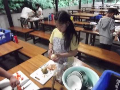 今日のハイライトです。写真は,カレーライスを作っています。みんな上手に野菜を切っていました。