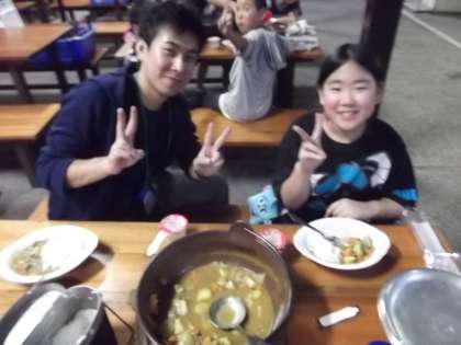 今日のハイライトです。写真は,カレーライスを食べている様子です。いただきます。
