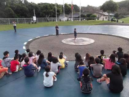 午前6時50分から朝の集いが行われました。朝の集いでは,醍醐西小学校の紹介や校歌を歌いました。