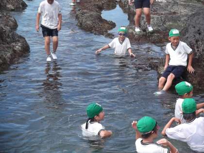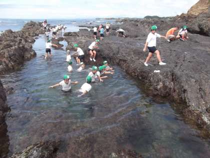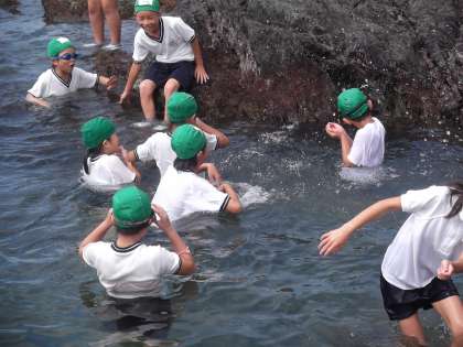 少し大きな潮溜まりでは,プールみたいにみんな楽しく泳いでいます。