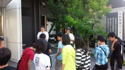 中央市場のあじわい館にて職員の方から,見学の仕方を聞いています。
