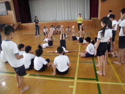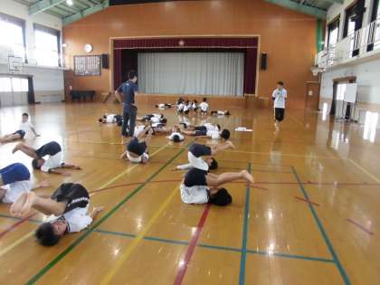 5年生は,運動会に向け組体操の練習に取り組んでいます。一つ一つの技を完成するこことも大変ですが,もっと難しいのは,全体の動きを合わせることです。「1,2,3,4・・・・」と声を合わせ,熱がこもった練習が続きます。