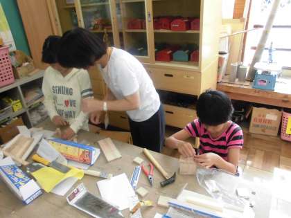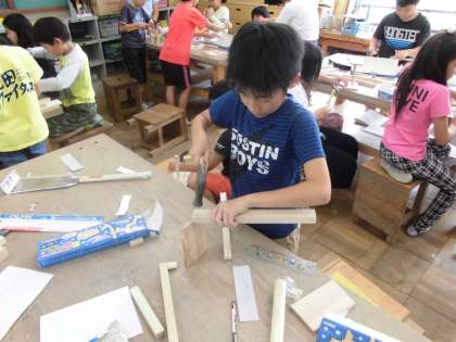 図画工作の時間に「木の世界」を学習しています。今日は,木を好きな形に切ってその木を組み合わせて作品をつくっていました。どんな作品が出来上がるのか楽しみですね。