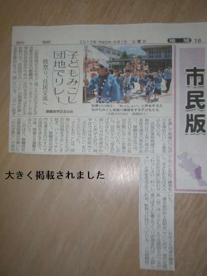 子どもたちがおみこしを担いでいる写真がカラーで載っていました。大変うれしいことです。