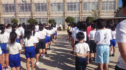 支部陸上記録会の開会式が始まりました。いよいよ競技が始まります。