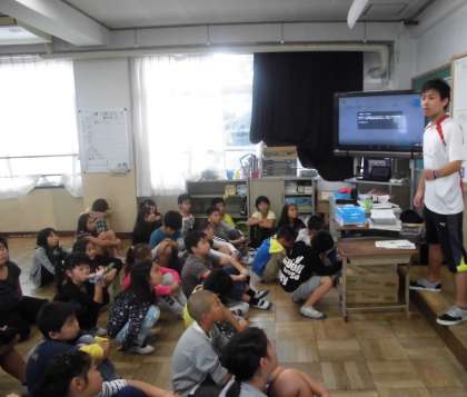 明日,3年生と合同で団体演技の練習をします。今日は,明日の練習の仕方や流れを確認していました。