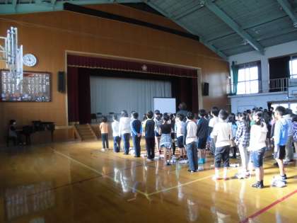 今日は,平成27年度前期終業式が行われました。式のはじめに校歌を元気よく歌いました。