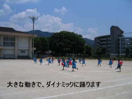 本番で着るはっぴを身にまとい、花の笠を持って最後の練習に挑みました。