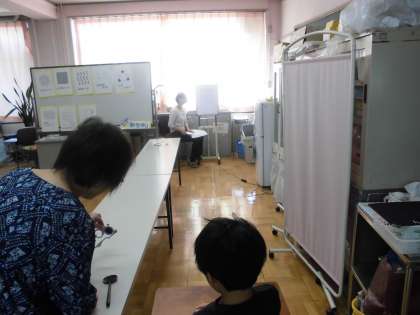 2校時に視力検査を行っていました。みんな上手に検査を受ける事が出来ました。