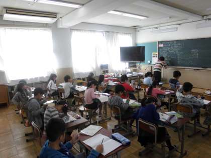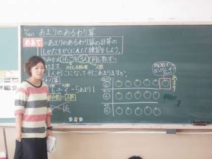 算数の時間に「あまりのあるわり算」を学習しています。今日は,あまりのあるわり算の計算の仕方を学習していました。