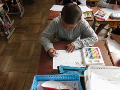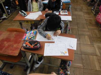 学活の時間に,花一輪運動の時に配布する運動会の案内状を作成していました。