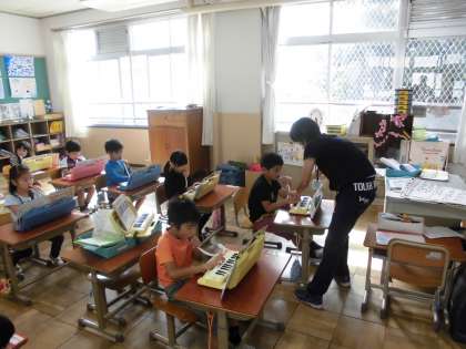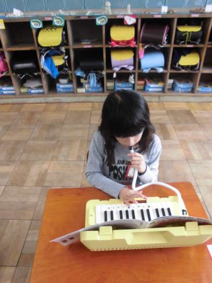 音楽の時間に「かっこう」を学習しています。今日は,けんばんハーモニカで「かっこう」を演奏していました。