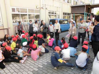 今日は,花一輪運動の日です。校区内に住む,一人暮らしのお年寄りの家にお花と手紙を届けました。