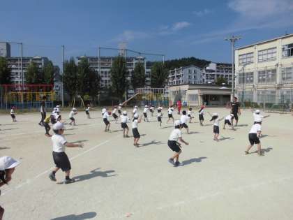 1年生と合同で団体演技の練習をしていました。とても演技が上手になっていました。当日が,楽しみですね。