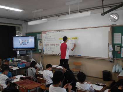 算数の時間に「わり算」を学習しています。今日は,あまりのある「わり算」の仕方を学習していました。
