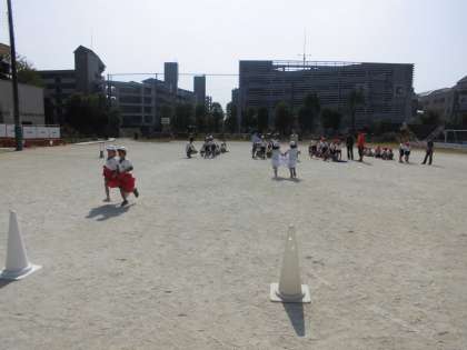 写真は,息を合わせて1・2,1・2!デカパン競争!!