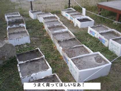 昨日,稲(米)作り用の土に水をはり,苗を植付けました。まだ少し小さな苗でしたが,子どもたちは一本一本ていねいに発泡スチロール田圃に植えました。