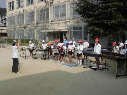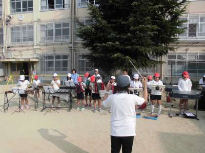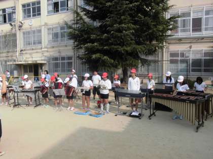 音楽部の合奏と行進が,ぴったりと合っていました。
