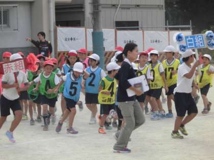 写真は,赤白対抗リレーの練習をしている様子です。熱戦が,続いていました。当日が,とても楽しみにしている。