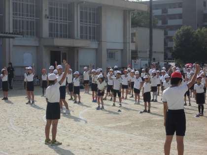 写真は,全校ダンスの様子です。練習通りの踊りが,出来ました。素晴らしい,ダンスを披露してくれました。