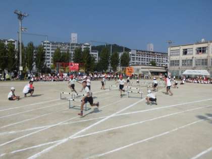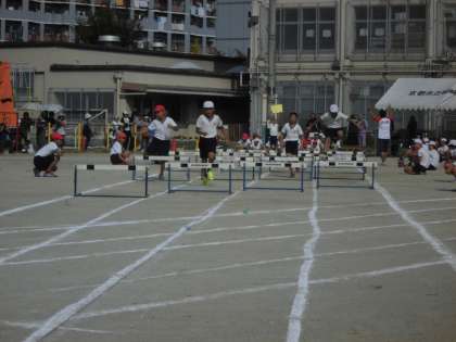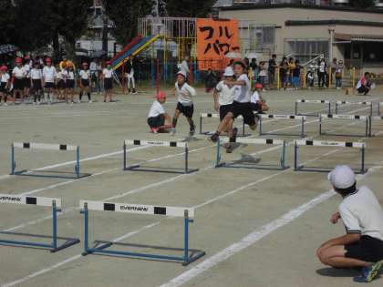 高学年による,60mハードル走です。さすが,高学年ハードルを上手にクリアしています。