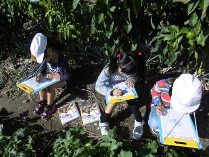 生活科の時間に「あきとあそぼう」を学習しています。今日は,大根を観察してスケッチしていました。