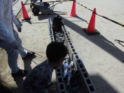 焼き芋を焼く準備が,出来ました。今から焼き芋を焼きます。