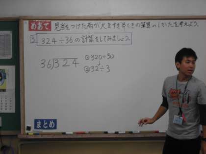 算数の時間に「わり算」を学習しています。今日は,わり算の筆算を学習していました。