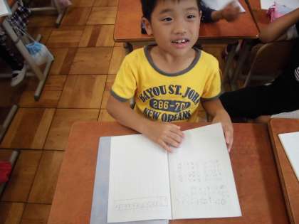 算数の時間に「かけ算」を学習しています。今日は,かけ算の九九の「5の段」を学習していました。